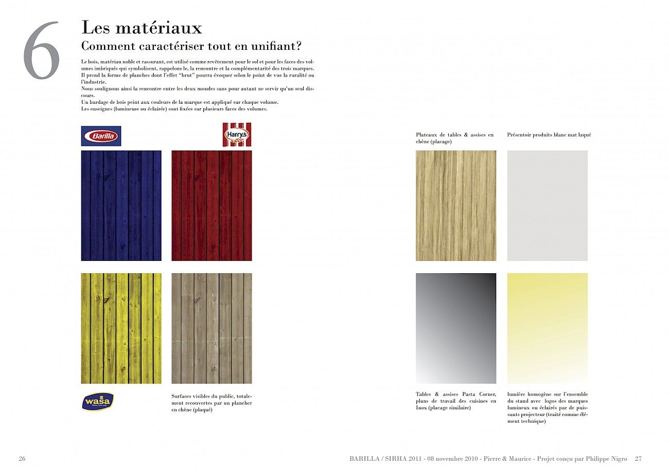 Nous avons réalisé la charte merchandising et architectural du groupe Barilla et de ses marques GMS. Cette charte, destinée aux salons et événements professionnels a offert à notre client les particularités d'un concept de restauration fort et durable : Trattoria de 15 mètres de long, cuisines d'appoints, mise en scène produit et gestion des espaces business par "temporalité" (matin, midi et soir).